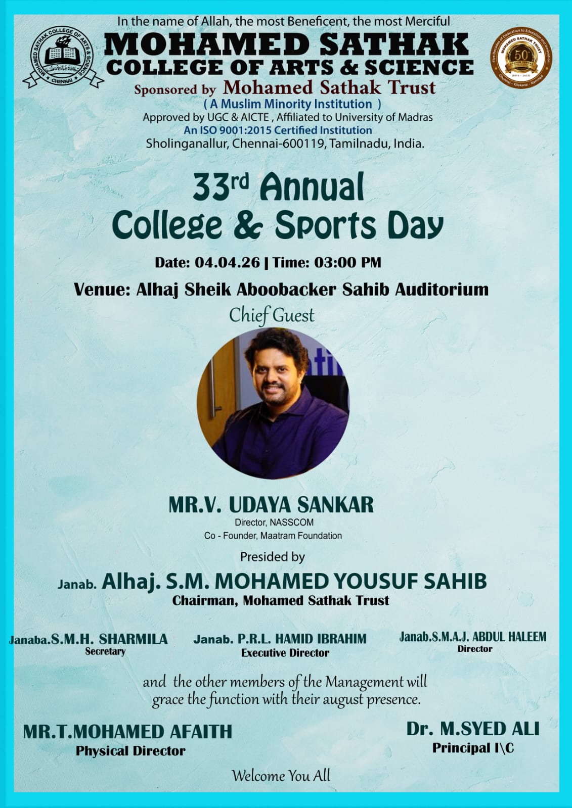For professional and personal success, a strong foundation is essential. My education at Mohamed Sathak College of Arts and Science provided strong academic knowledge and guidance.